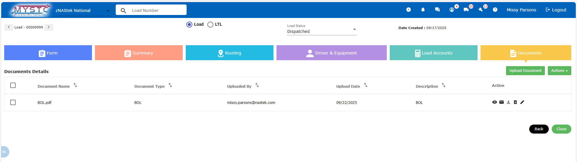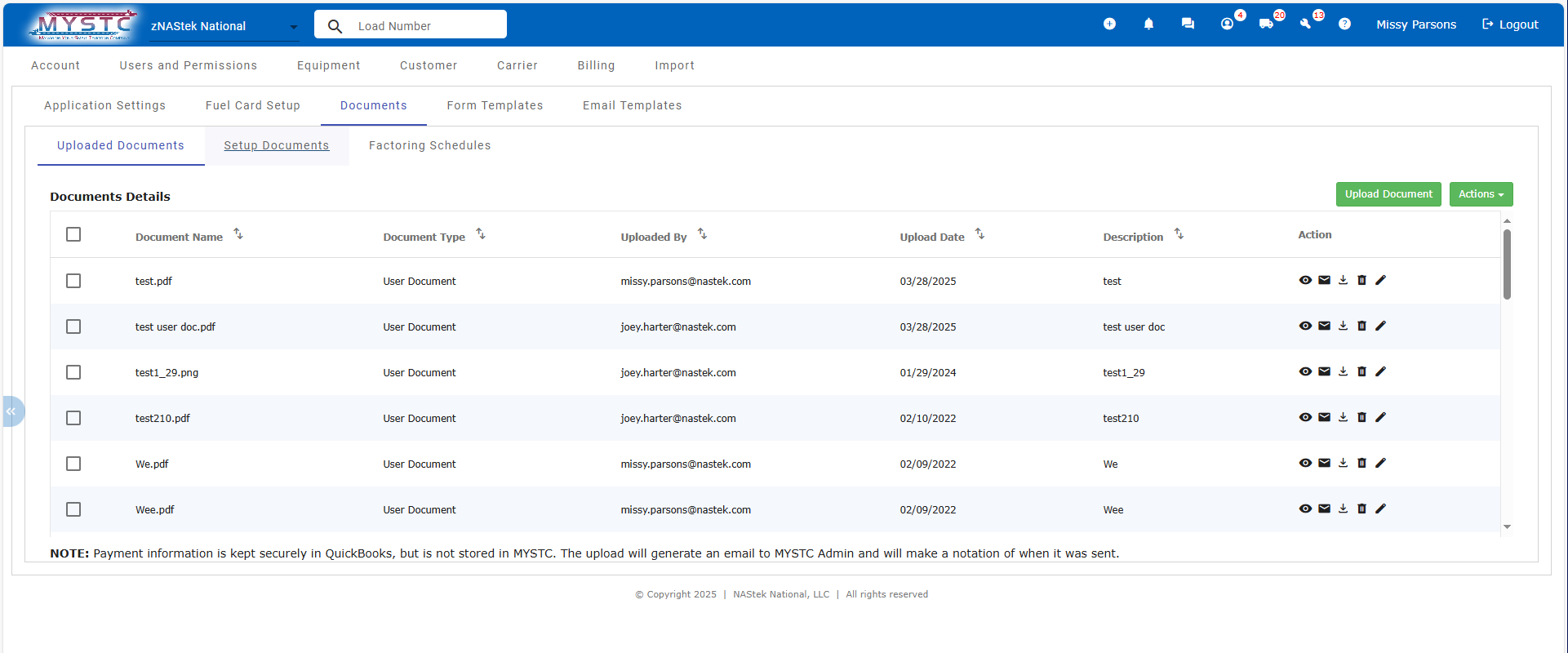 MYSTC trucking software includes a secure, cloud-based document storage system designed to streamline how you manage important files. This feature allows you to digitally upload, organize, send, and manage documents by load, driver, or company—reducing the reliance on physical storage and minimizing time spent filing or searching for paperwork. As a result, your office can operate more efficiently while freeing up valuable physical space.